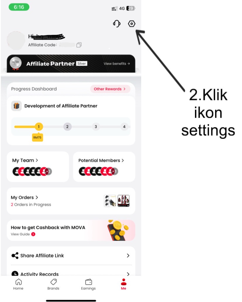Selepas daftar, anda akan nampak profil akaun sendiri di bahagian "Me". Dari situ, anda boleh mula membuat pembelian, mengesan cashback, atau berkongsi link pendaftaran dengan orang lain. Semuanya direka untuk mudah difahami walaupun oleh pengguna kali pertama.