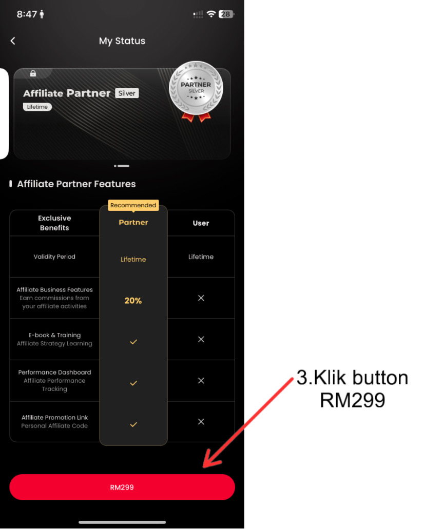 Sekali lagi saya ingatkan, sebelum upgrade kepada Affiliate Partner. Tolong gunakan Referral Code saya iaitu: