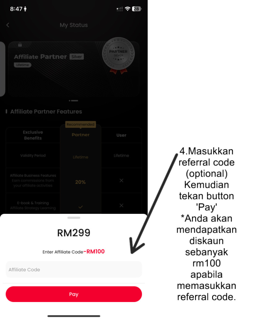 Sekali lagi saya ingatkan, sebelum upgrade kepada Affiliate Partner. Tolong gunakan Referral Code saya iaitu: